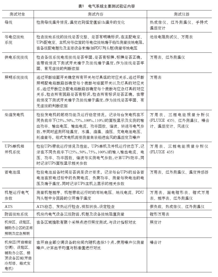 數據中心基礎設施的電氣系統不但承擔著保障IT設備電力供應和電能質量的任務,還要解決空調設備、機房照明、應急照明、消防、監控等其他設備的用電問題,是基礎設施中最為重要的子系統,也是為數據中心提供運行動力的基礎,所以對電氣系統的測試驗證工作尤為重要。