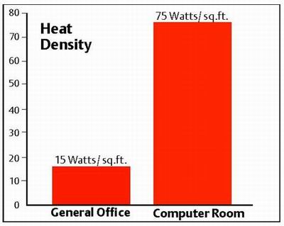 圖2:計算機房內的熱密度一般是辦公環境的3-5 倍。