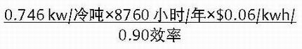 首先,計算一冷噸制冷量的機組運行一年的成本: