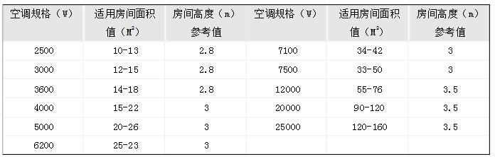 注:變頻機(jī)相應(yīng)機(jī)型,適用面積可大些(附表中面積的1.2~1.3倍)。
