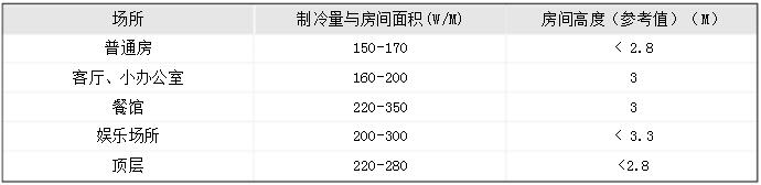 在不同的使用場所,單位面積所需制冷量負(fù)荷有所不同,人員越多,散熱量越大,房間內(nèi)的電器設(shè)備約會產(chǎn)生熱負(fù)荷。